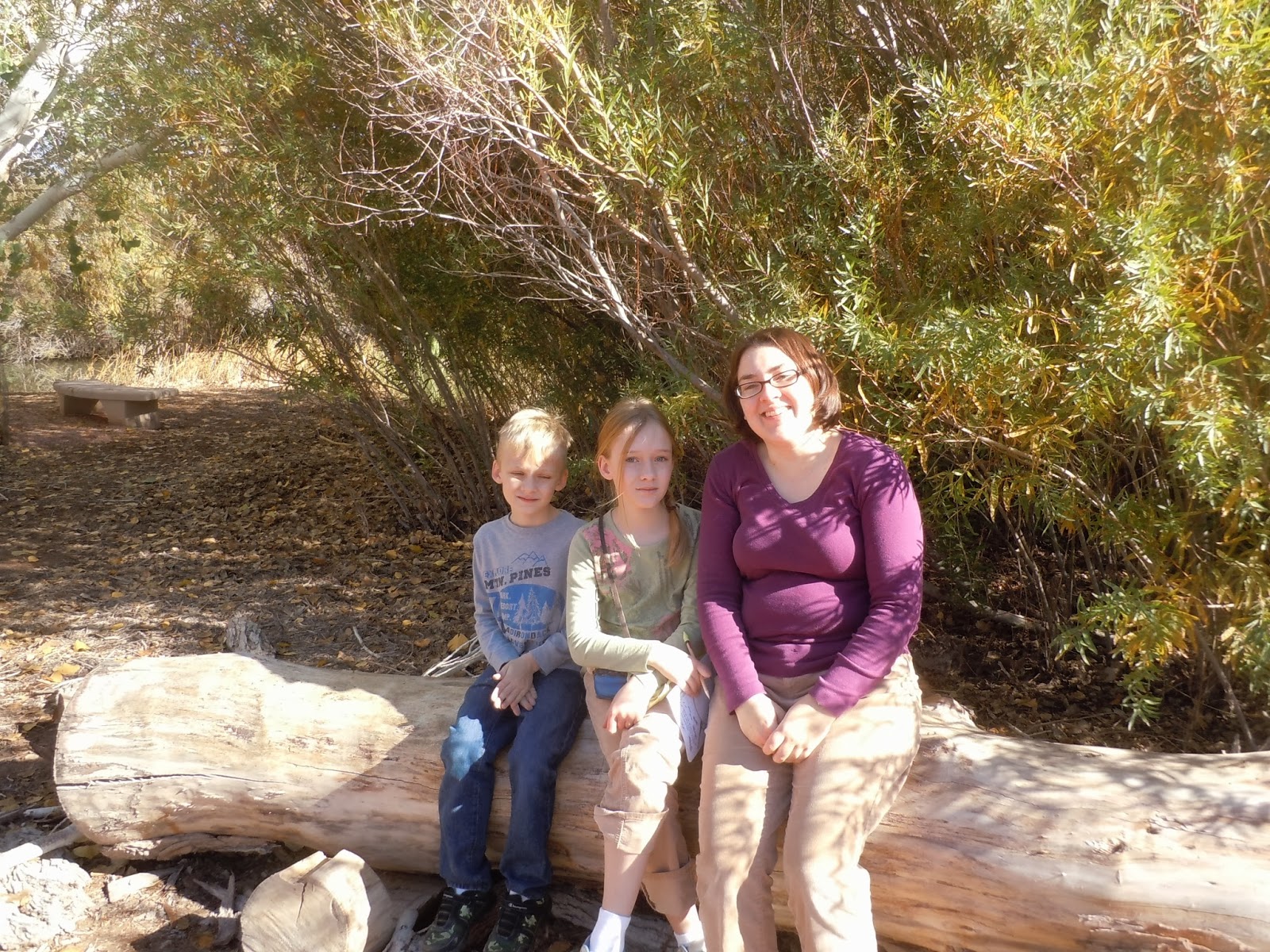 I started the turkey roasting, and then I heard the discontented quarreling of children who've done nothing but lie on the floor and watch T.V. The sick one was quietly enjoying not moving and just letting Minnie Mouse and friends entertain her. But those two older ones got scooped up by grandma and we went off to explore one of the entrances of the wetlands that is near our house. Binoculars, hiking shoes, sunscreen---off we went.